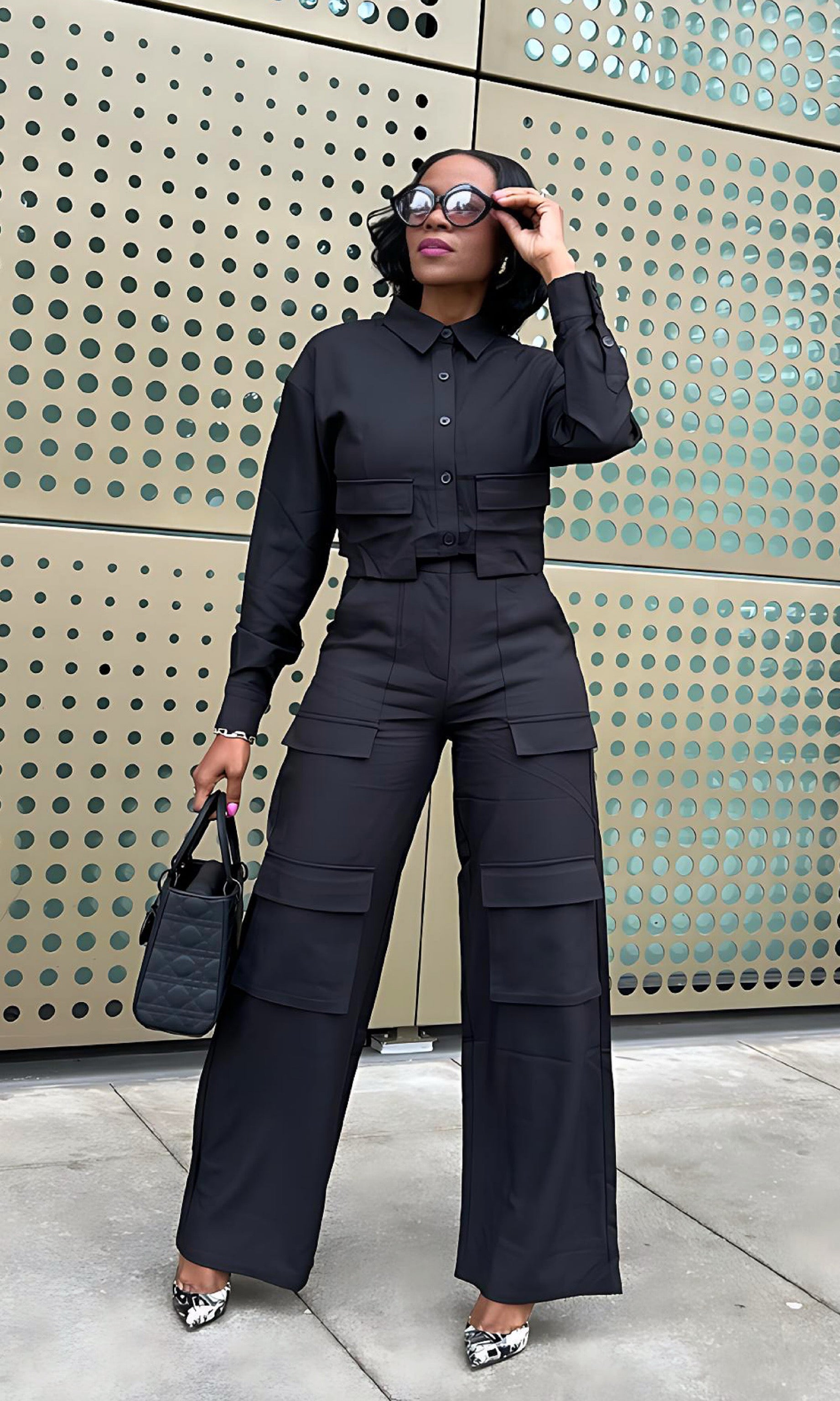 This highwaist cargo set gives edge and grace! This set is perfect for a sporty chic elevated casual look with heels or sneakers. Who said casual had to be boring?
