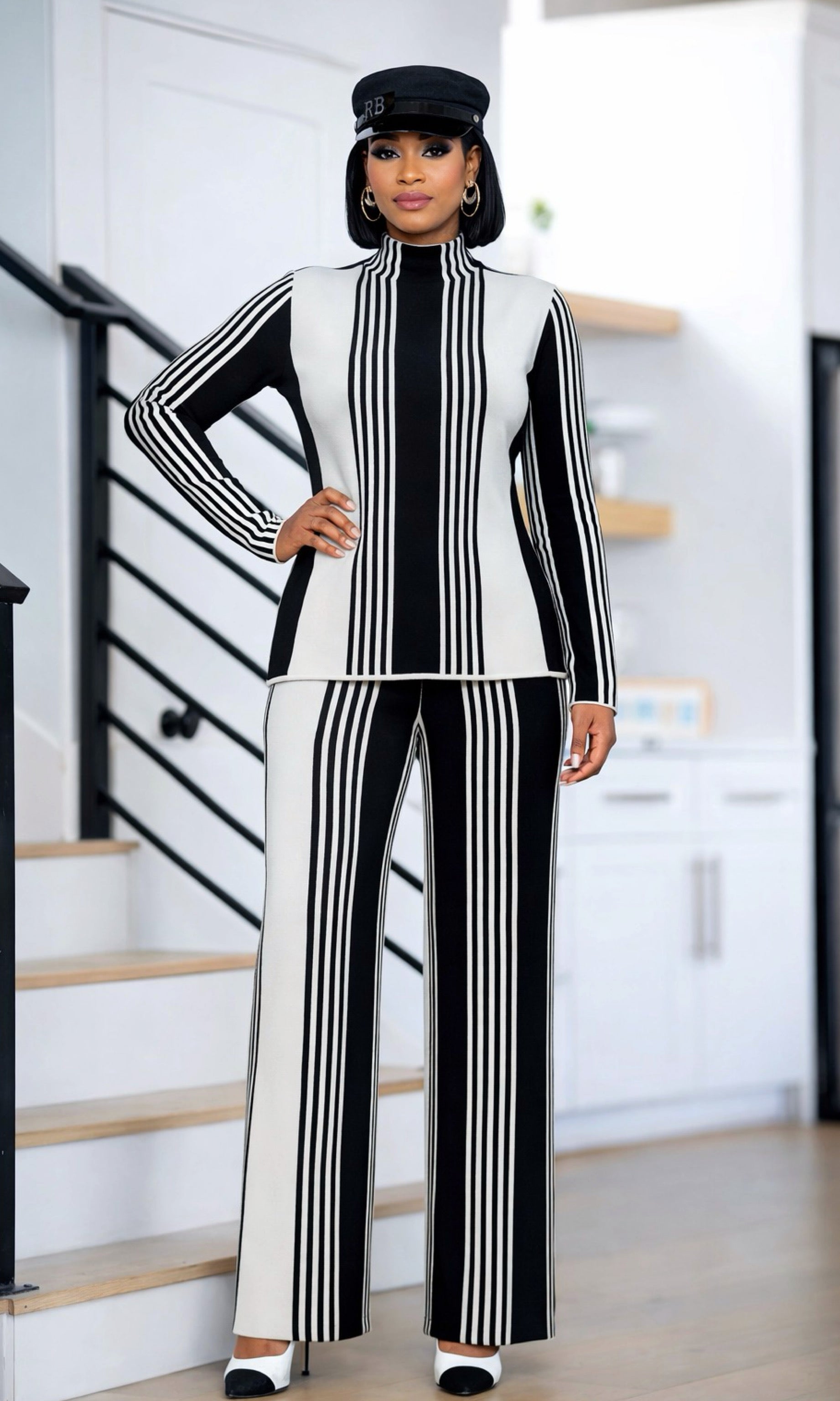 Shelly Striped Black and White Knit Pants Set