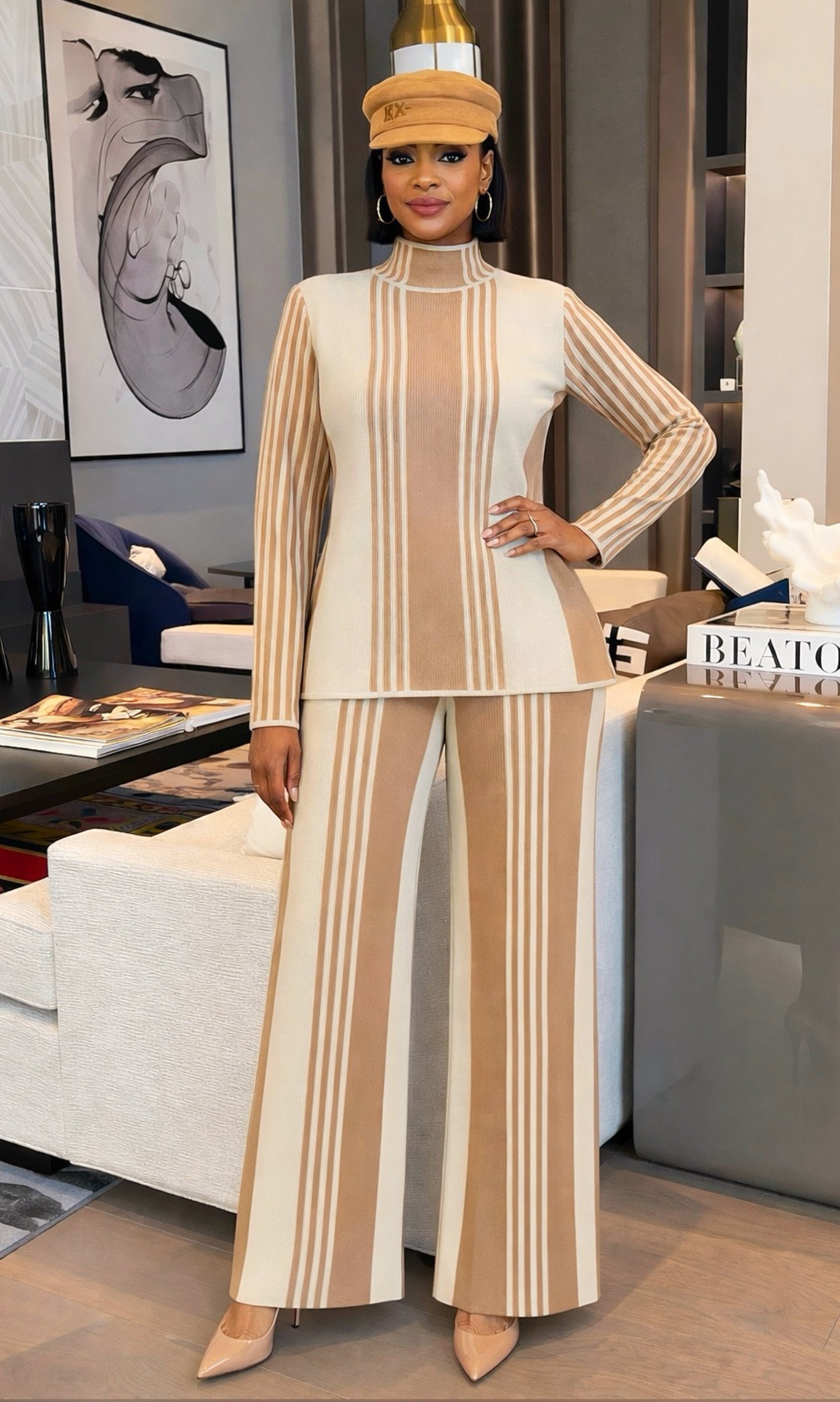 Shelly Striped Mocha Knit Pants Set
